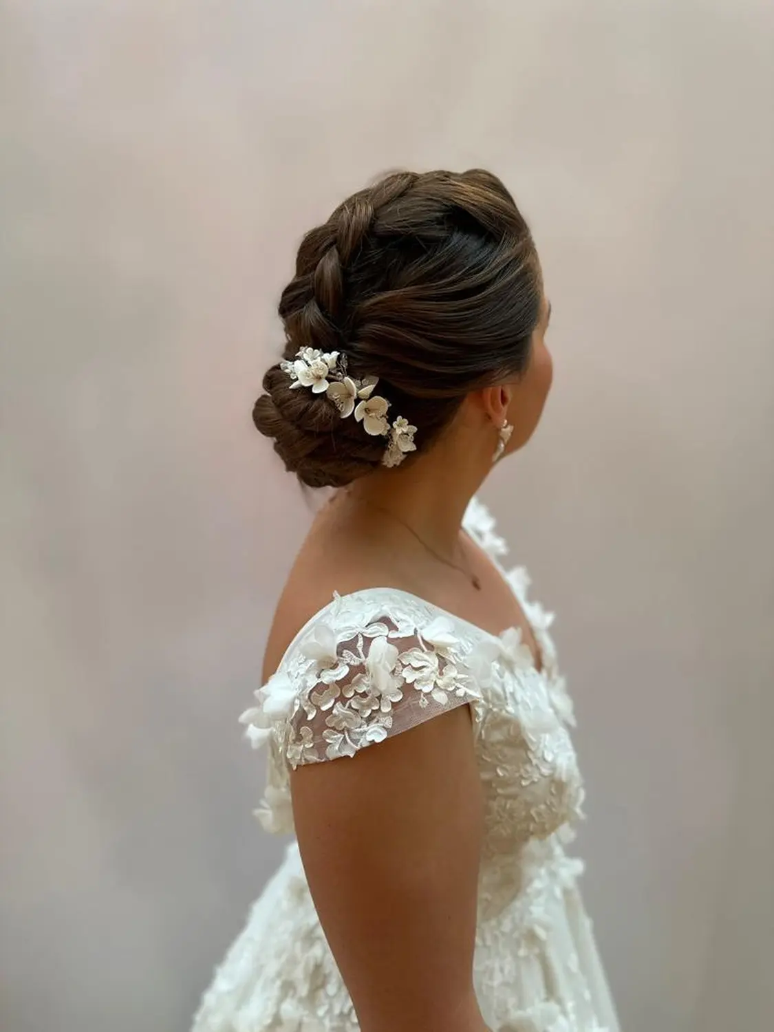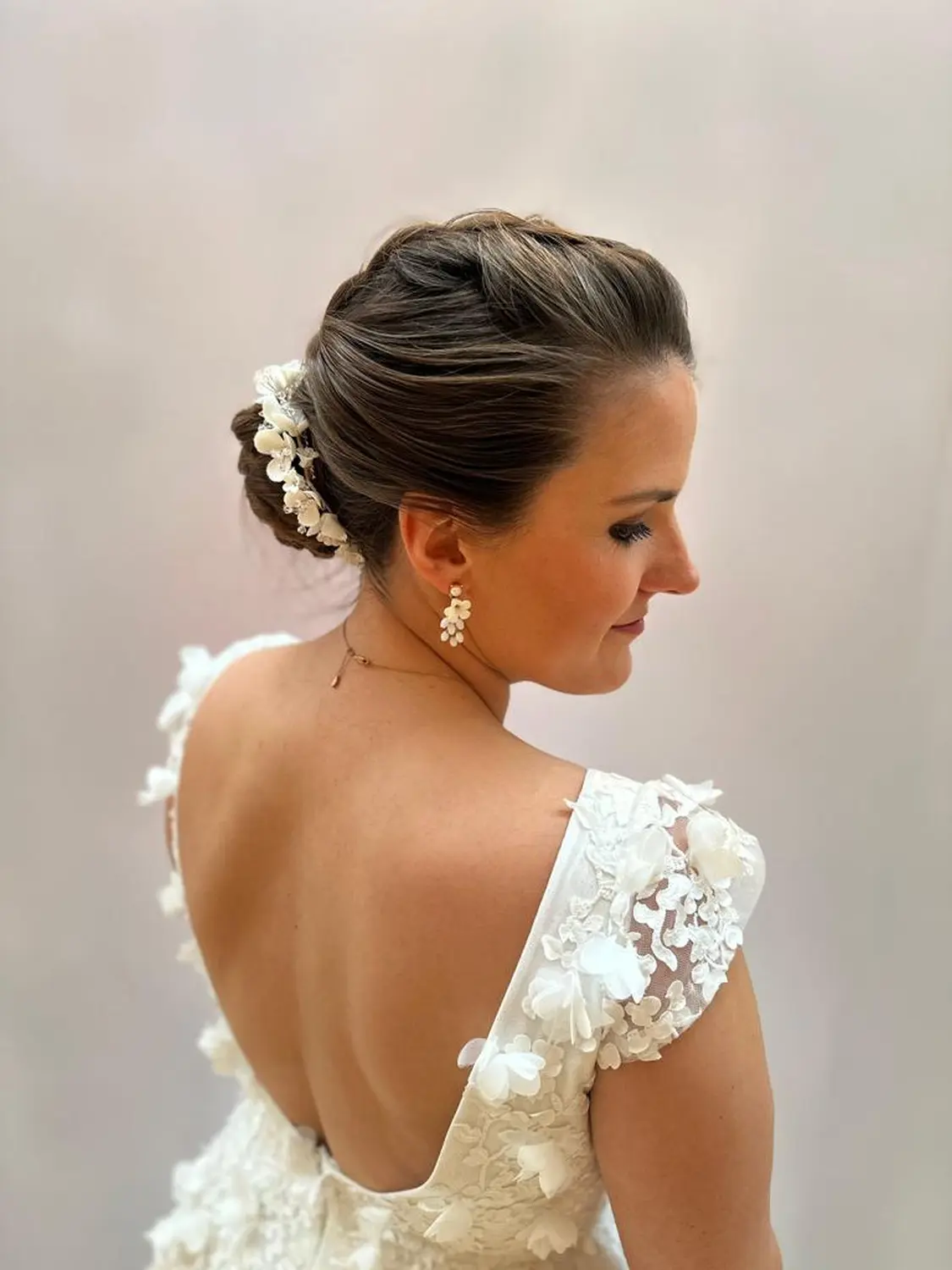 Blumen, Haarschmuck, Schleier oder Spangen können eine Brautfrisur wunderbar ergänzen. Sie verleihen dem Look eine persönliche Note und setzen Akzente.